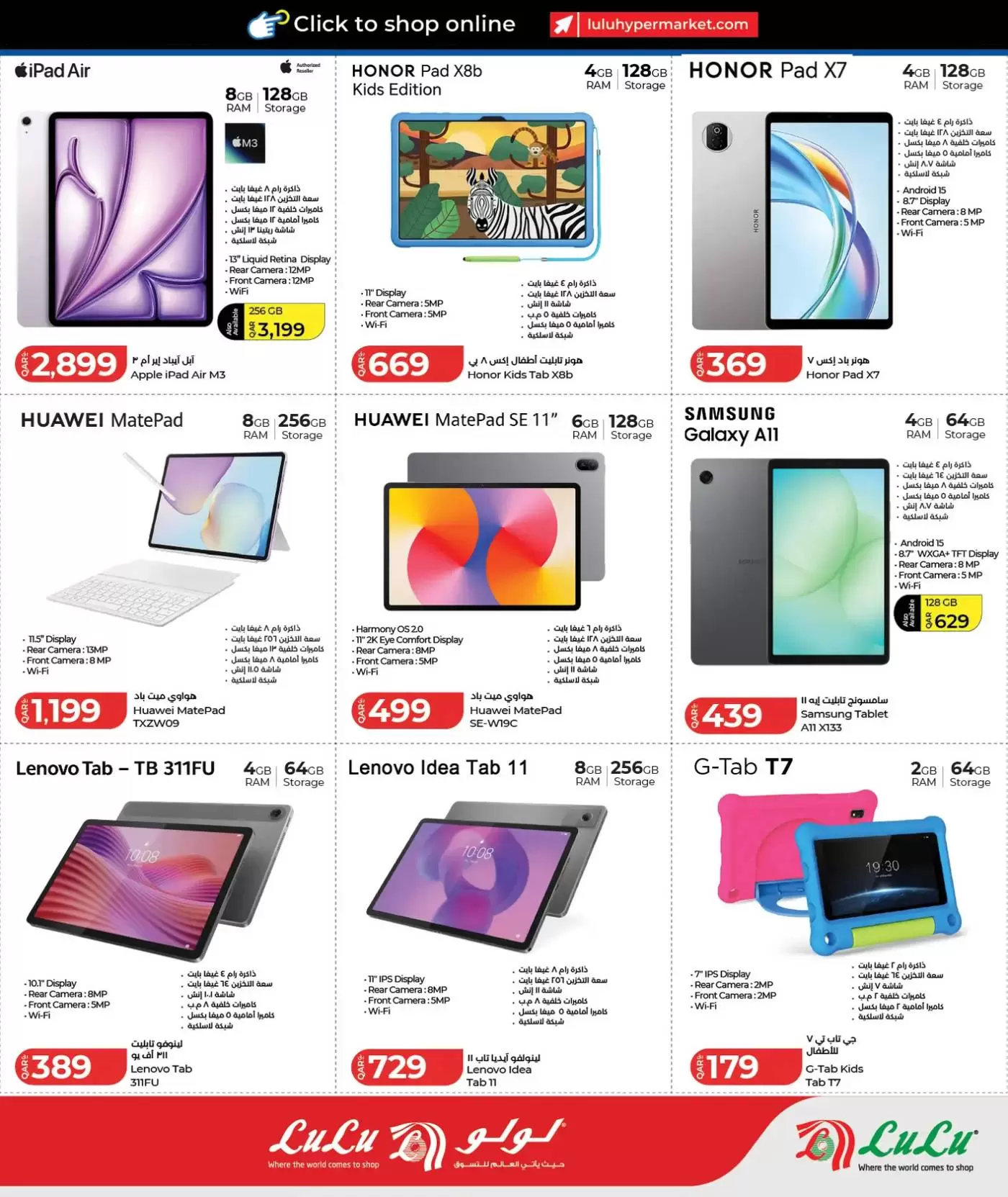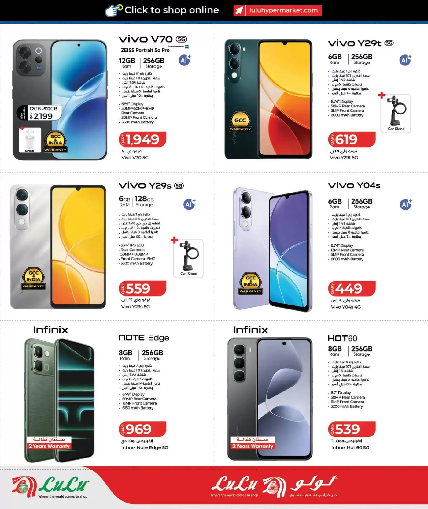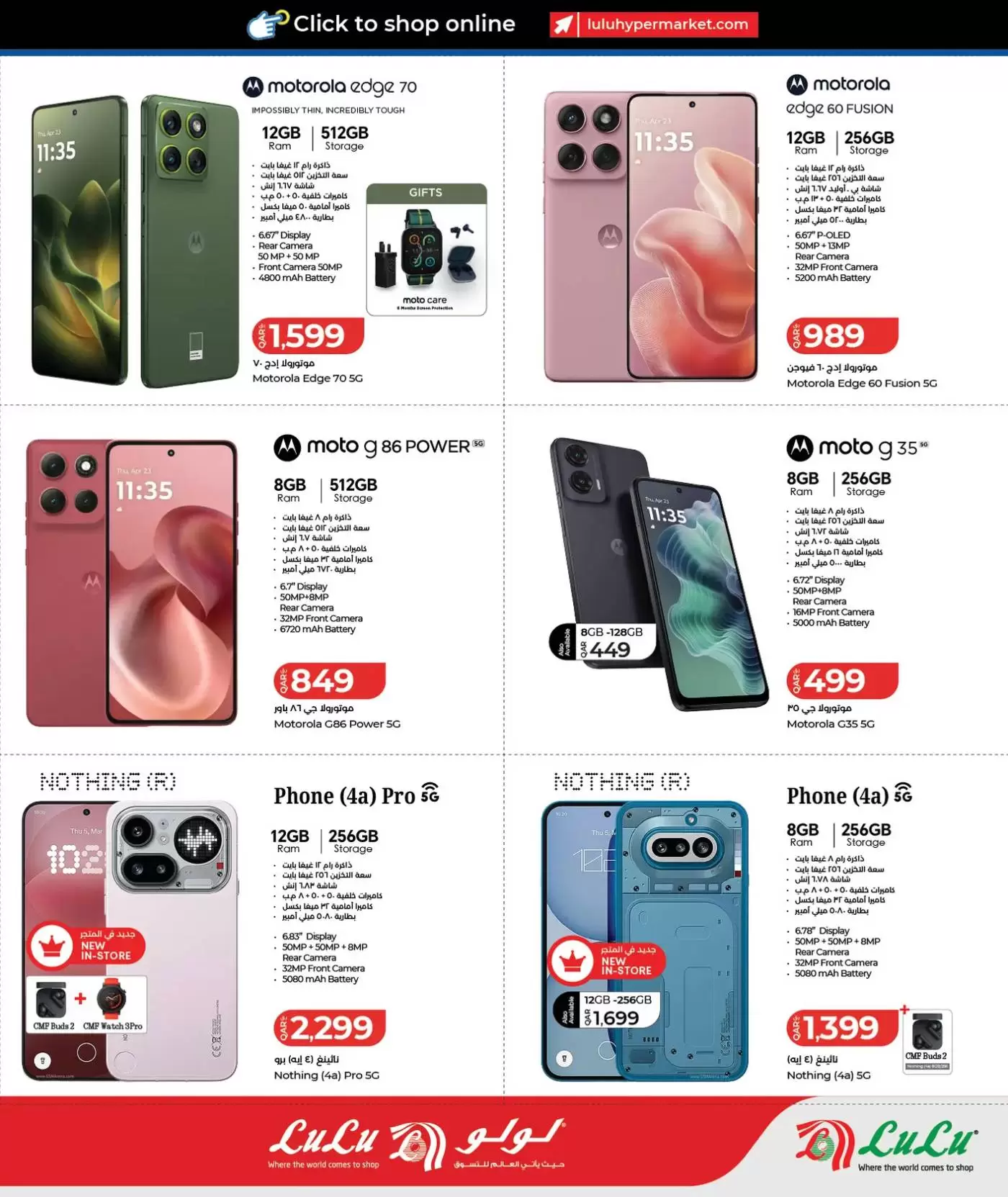 ملاحظة هامة: العروض سارية حتى نفاد الكمية، وبعض العروض محددة بـ "7 أيام فقط". يُنصح بزيارة أقرب فرع لولو (المطار، الغرافة، لوسيل، أو المسيلة) مبكراً لضمان الحصول على أفضل الأجهزة قبل نفاد المخزون.