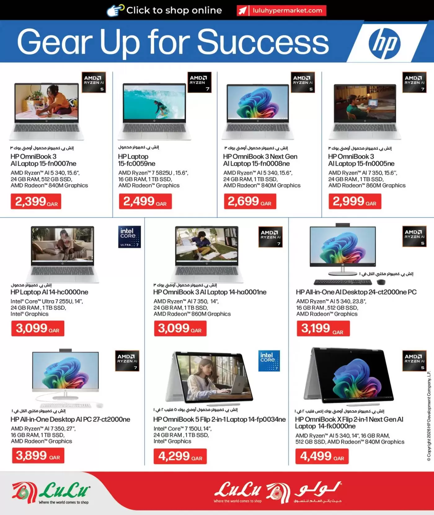 لعشاق الإنتاجية والألعاب، تقدم لولو قطر تشكيلة واسعة من أجهزة HP المزودة بتقنيات الذكاء الاصطناعي (AI):