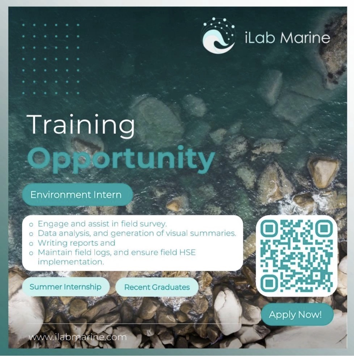 هل تبحث عن انطلاقة حقيقية لمسارك المهني في قطاع البيئة والاستدامة؟ أعلنت شركة آي لأب مارين (iLab Marine)، الرائدة في الحلول البحرية والبيئية ومقرها ولاية السيب، عن فتح باب التسجيل لفرصة تدريب صيفي (Summer Internship) متميزة تستهدف الكوادر العمانية الشابة من حديثي التخرج .