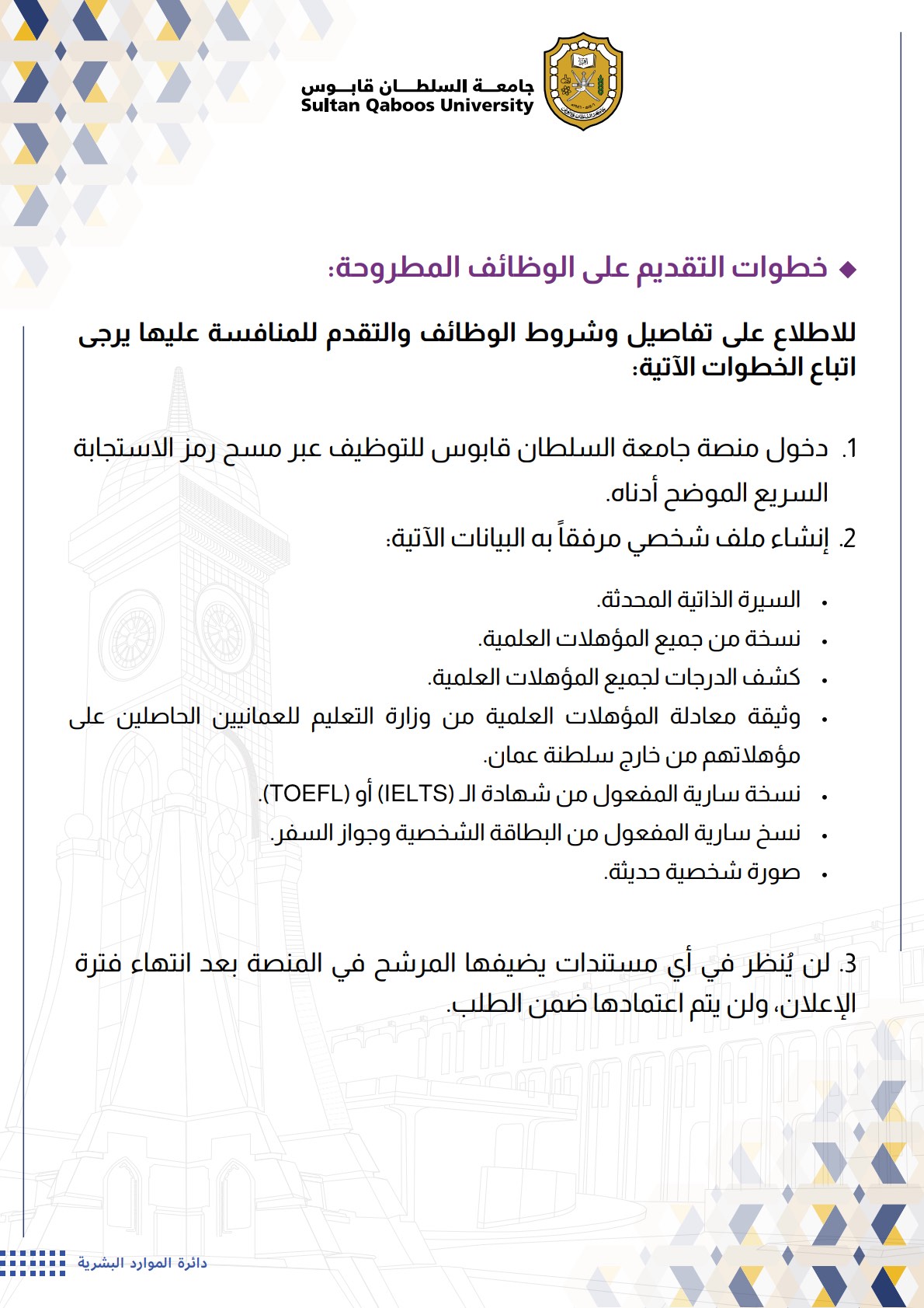 مع خالص التحيات، جامعة السلطان قابوس - دائرة الموارد البشرية.
