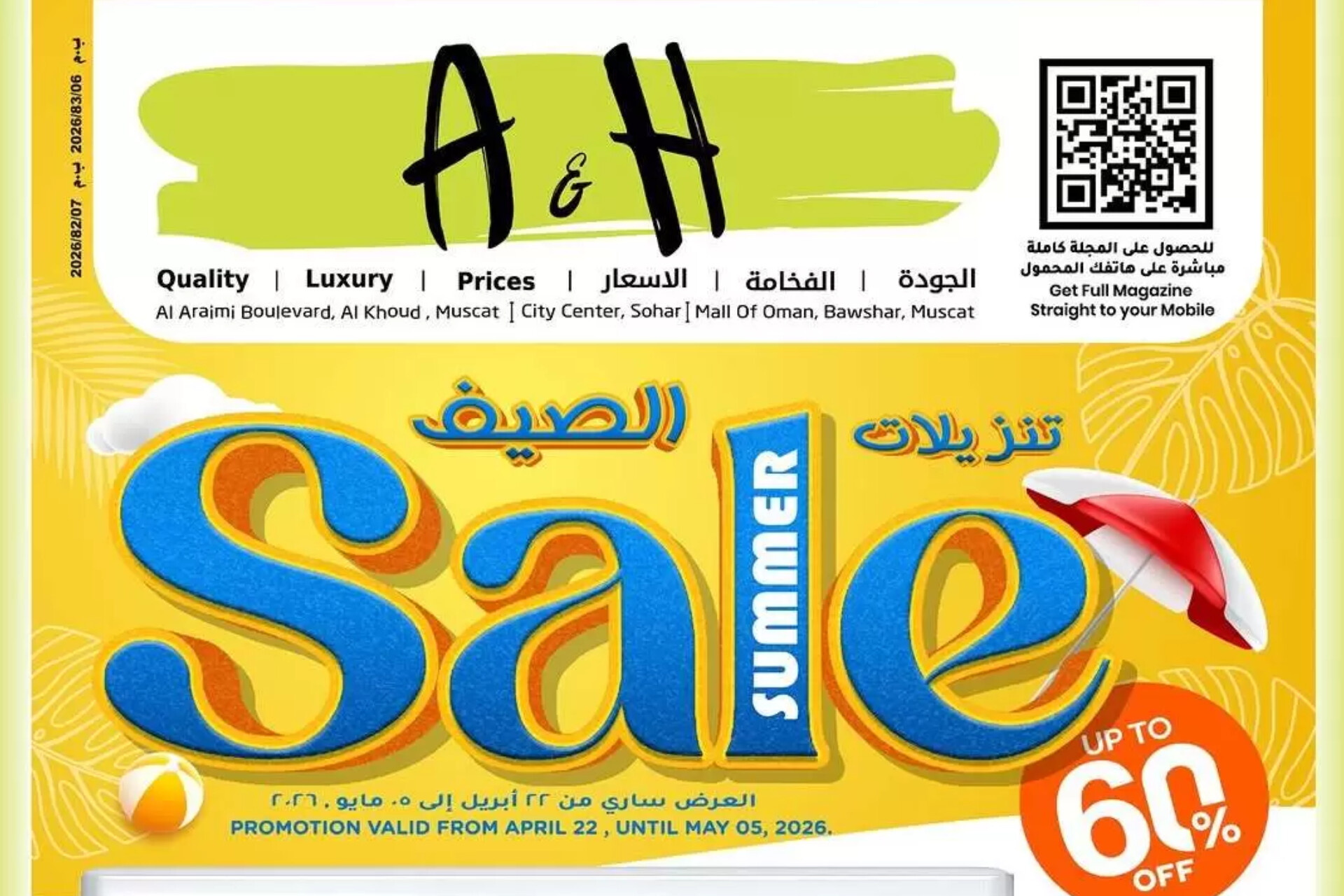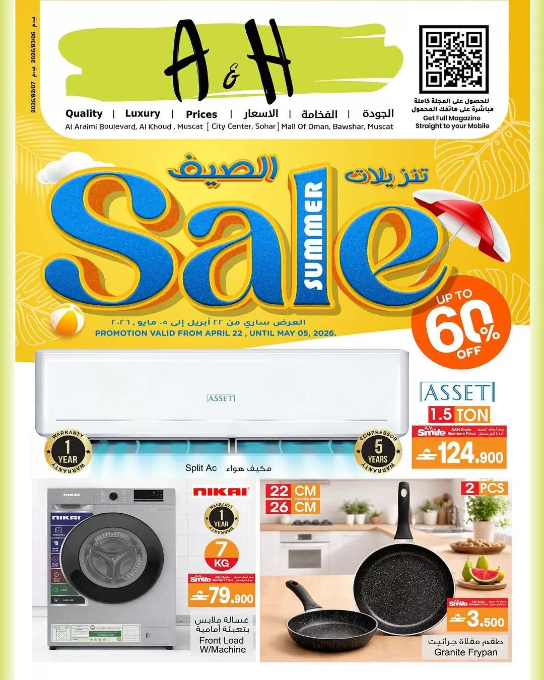 هل تبحث عن تجديد منزلك بأفضل الأجهزة الكهربائية؟ أو ربما تخطط لرحلة الصيف وتحتاج لحقائب سفر متينة وبأسعار لا تُصدق؟ أطلقت مجموعة أيه أند إتش (A&H) في سلطنة عمان حملتها الكبرى "تنزيلات الصيف" بخصومات تصل إلى 60%، لتشمل كل ما تحتاجه العائلة العمانية تحت سقف واحد .