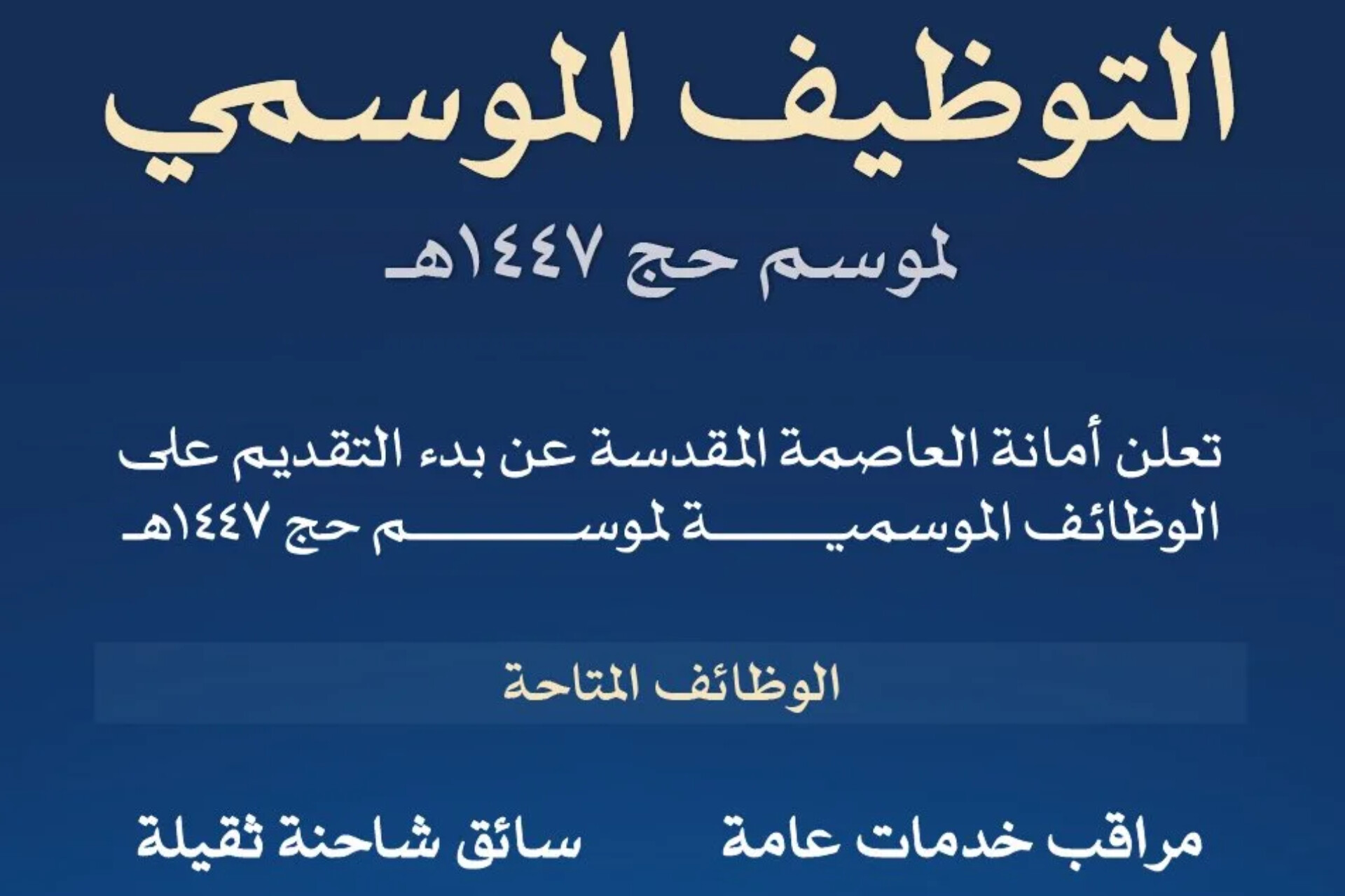 أتاحت الأمانة مسارات وظيفية محددة تتناسب مع احتياجات الموسم التشغيلية، وهي عشجذث بحسب ما تم تداوله على وسائل الإعلام :