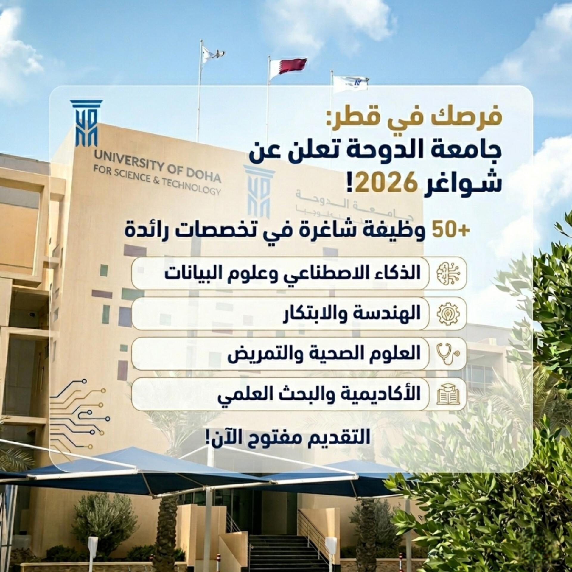 مع استمرار قطر في ريادة المنطقة كمركز عالمي للابتكار والتعليم، تبرز جامعة الدوحة للعلوم والتكنولوجيا (UDST) كأحد أهم جهات التوظيف في عام 2026 . إذا كنت تبحث عن "وظائف في قطر 2026" برواتب تنافسية وبيئة عمل عالمية، فإن هذا الدليل يستعرض لك أحدث الشواغر التي تم الإعلان عنها مؤخراً.