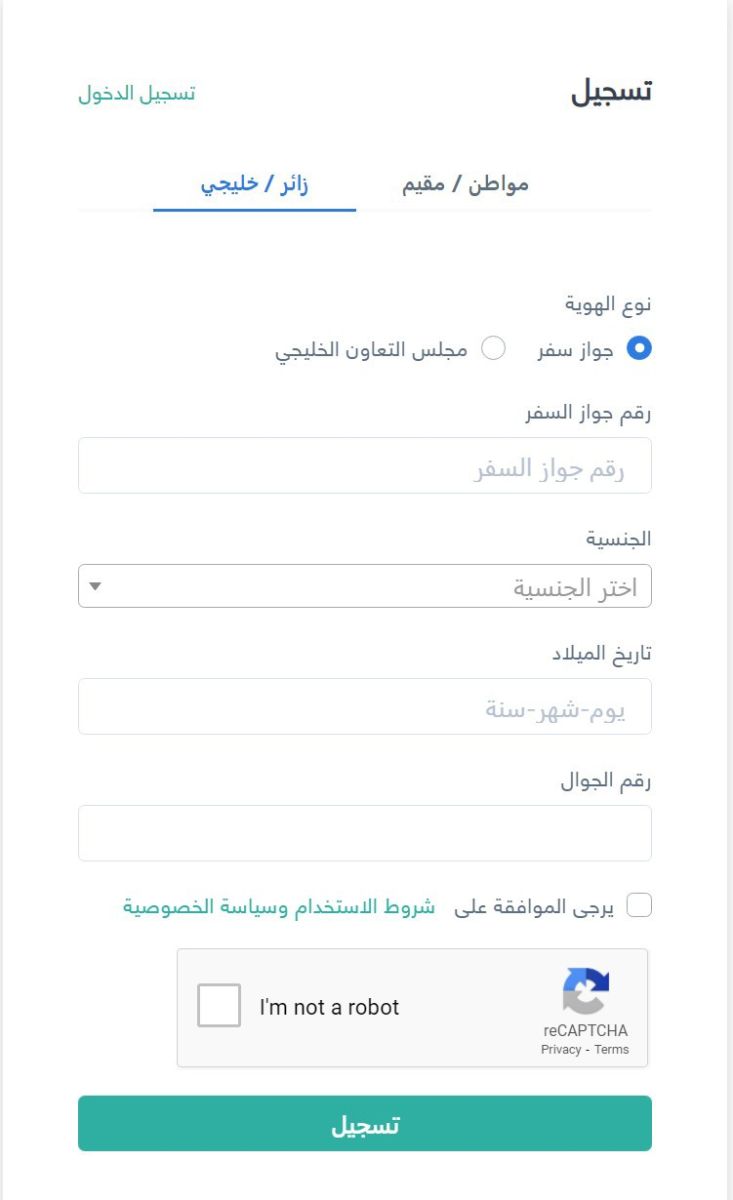 تسجيل الزائر في تطبيق توكلنا في السعودية
