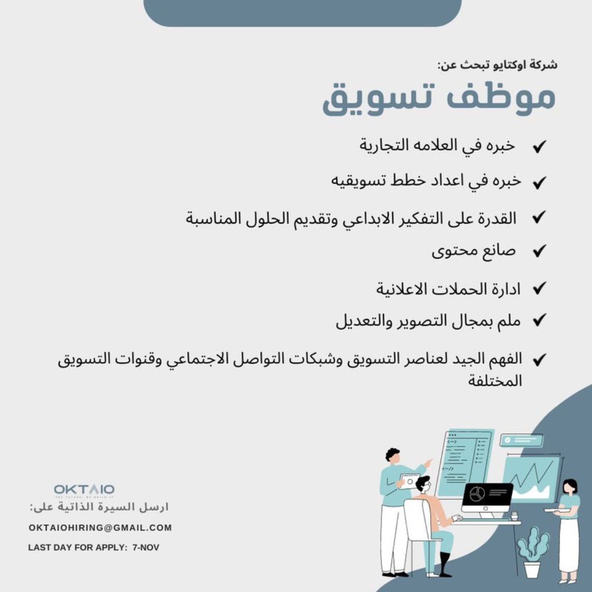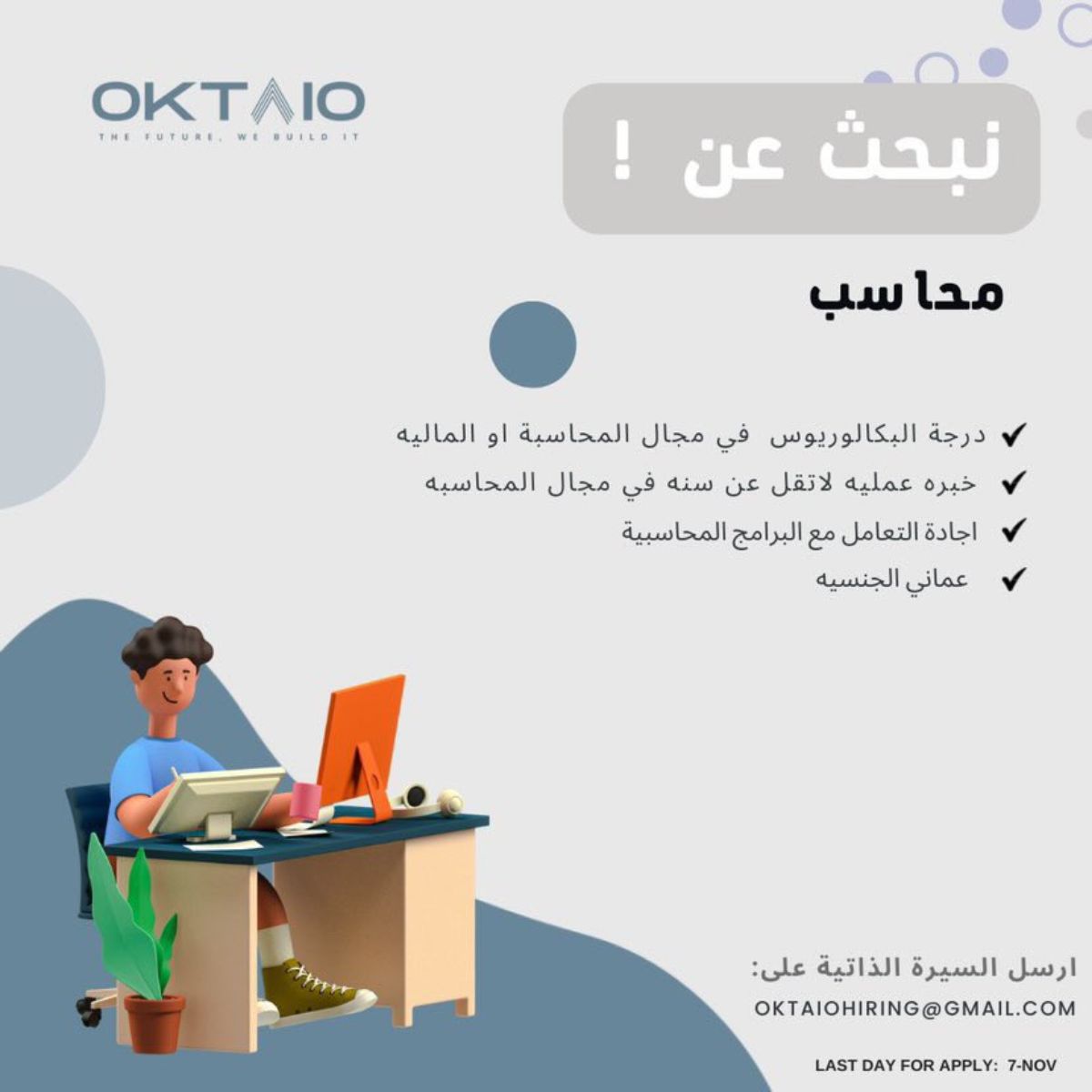شركة أوكتايو في سلطنة عمان اليوم اعلنت عن توفر فرص وظيفية شاغرة بمختلف المؤهلات والتخصصات منها مطلوب موظف مبيعات ومطلوب محاسب ومطلوب موظف تسويق، وفي هذه السطور سوف نعرض لكم تفاصيل أكثر عن هذه الوظائف وعن طريقة التقديم لها .