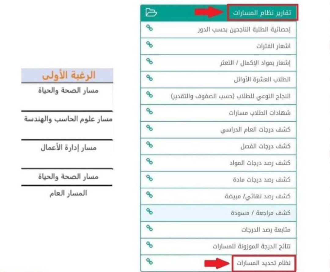 وبالإمكان الاطلاع على نتائج تحديد المسارات لطلاب السنة الأولى المشتركة للعام الدراسي القادم 2022/ 1444 من خلال حساب المدير، وذلك باتباع الخطوات التالية: